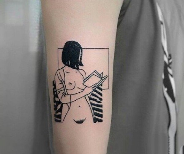 极简线条纹身 多款极简线条纹身素描欧美抽象纹身图片