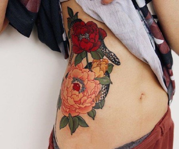 纹身小牡丹 黑色调却不失华贵的牡丹纹身图案