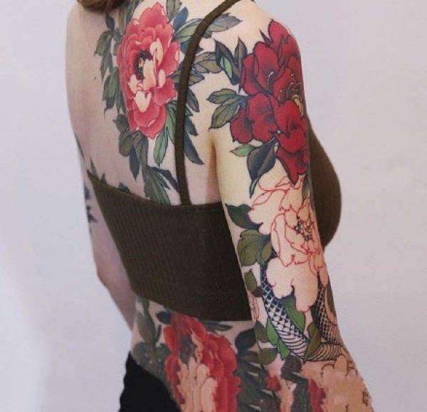 纹身小牡丹 黑色调却不失华贵的牡丹纹身图案
