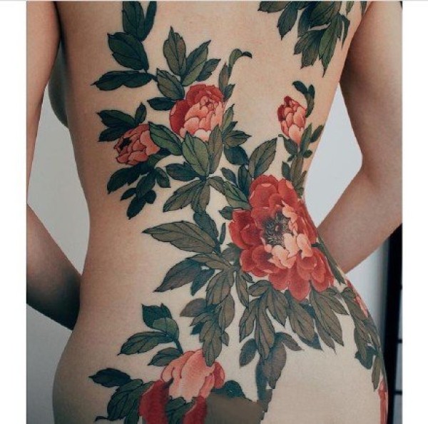 纹身小牡丹 黑色调却不失华贵的牡丹纹身图案