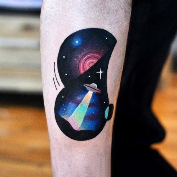 一组炫彩色星空星球宇宙相关的纹身图案作品