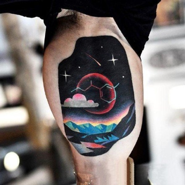 星空梦幻元素的彩色风景纹身图案9张