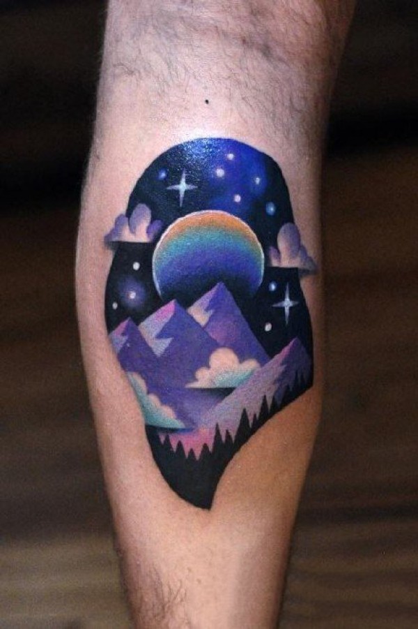 一组炫彩色星空星球宇宙相关的纹身图案作品