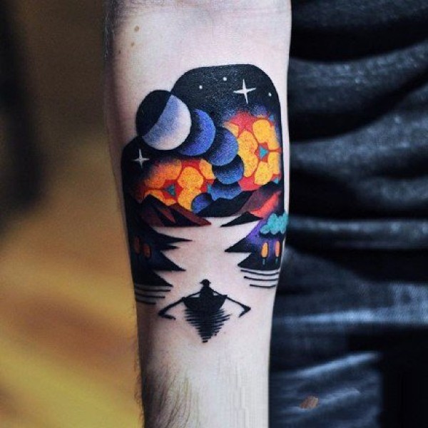 一组炫彩色星空星球宇宙相关的纹身图案作品