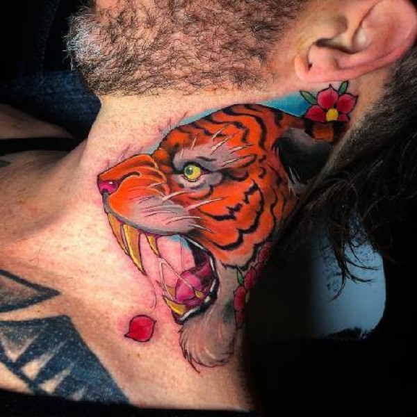 newschool老虎:一组school风格的彩色老虎纹身图案