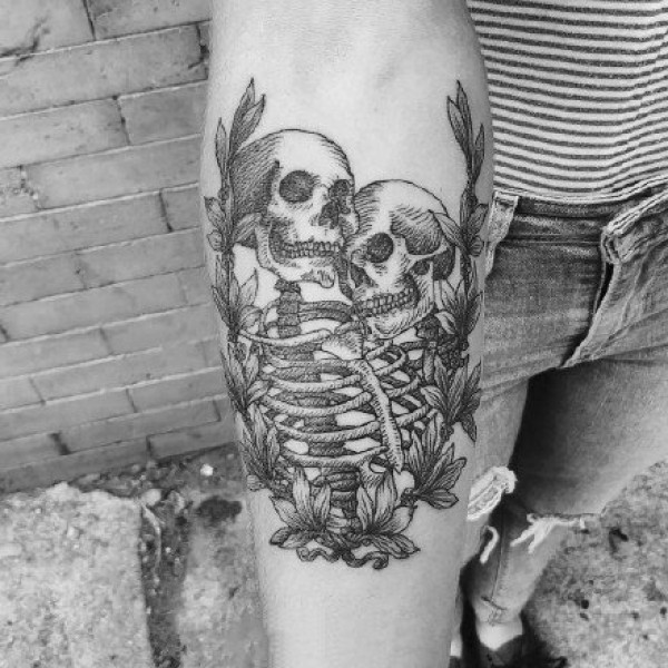 心脏纹身图案 女生手臂上黑灰纹身心脏纹身图案