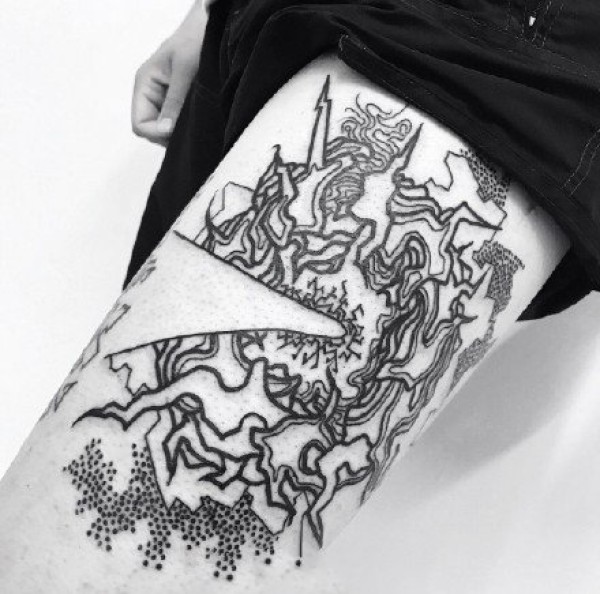 很奇妙的线条组成的黑灰色点刺纹身图案9张