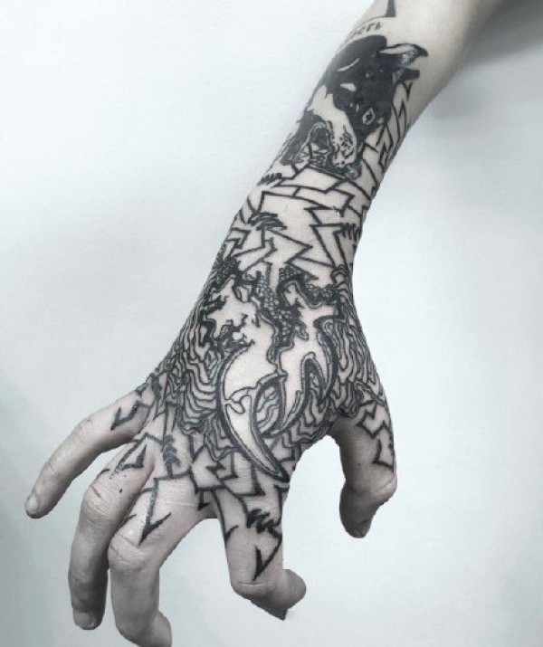 很奇妙的线条组成的黑灰色点刺纹身图案9张