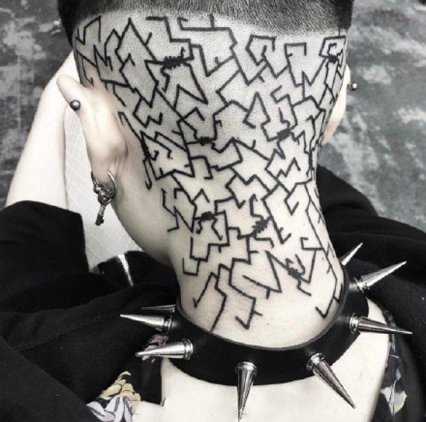 很奇妙的线条组成的黑灰色点刺纹身图案9张