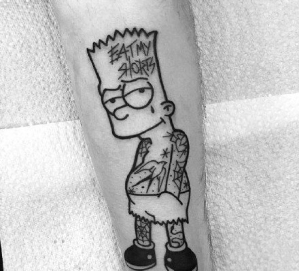 黑灰色线条的一组卡通动画角色辛普森纹身图案