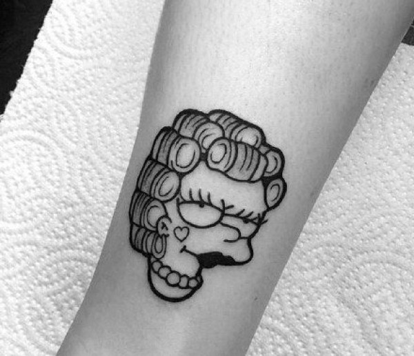 黑灰色线条的一组卡通动画角色辛普森纹身图案