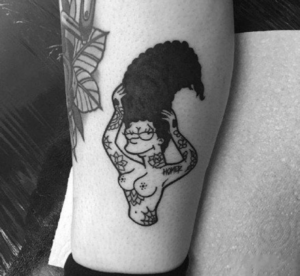 黑灰色线条的一组卡通动画角色辛普森纹身图案