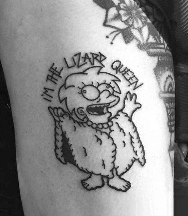 黑灰色线条的一组卡通动画角色辛普森纹身图案
