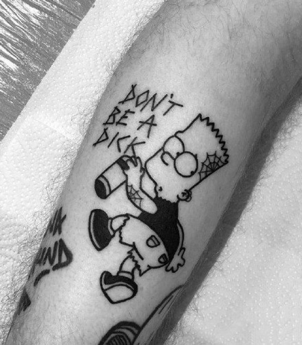 黑灰色线条的一组卡通动画角色辛普森纹身图案