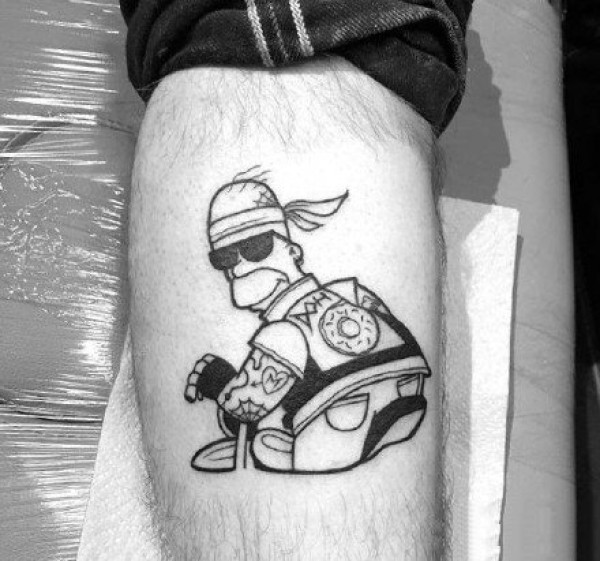 黑灰色线条的一组卡通动画角色辛普森纹身图案