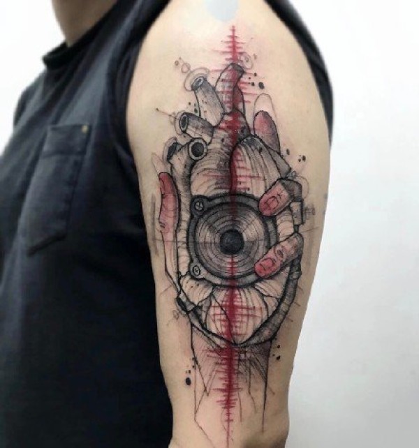 心脏纹身图案 女生手臂上黑灰纹身心脏纹身图案