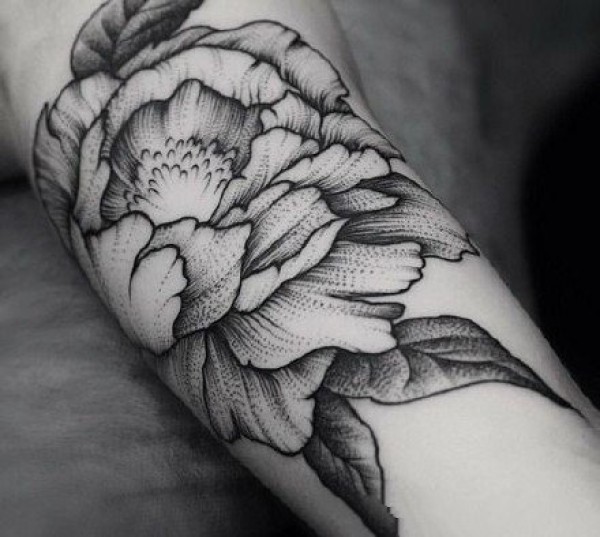 纹在手臂胳膊上的黑灰素花花卉纹身图案欣赏