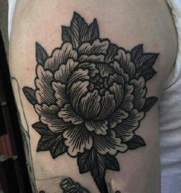 肩花纹身--一组适合肩部的黑灰肩花纹身图案欣赏