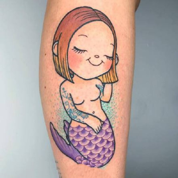 很可爱的一组小彩色卡通Q版美人鱼纹身图案