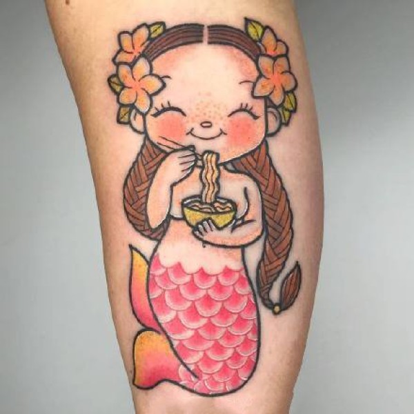 很可爱的一组小彩色卡通Q版美人鱼纹身图案