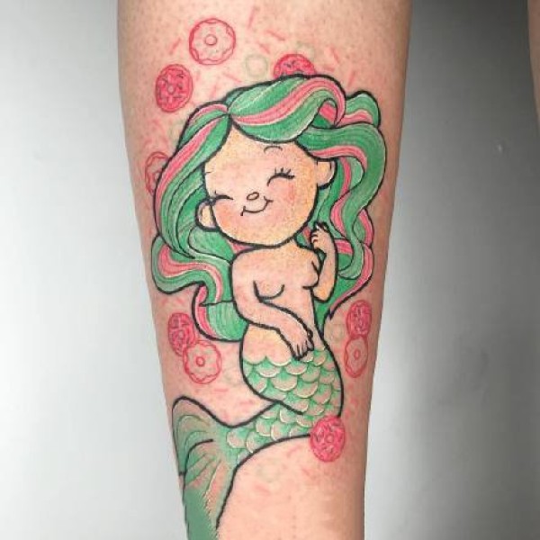 很可爱的一组小彩色卡通Q版美人鱼纹身图案