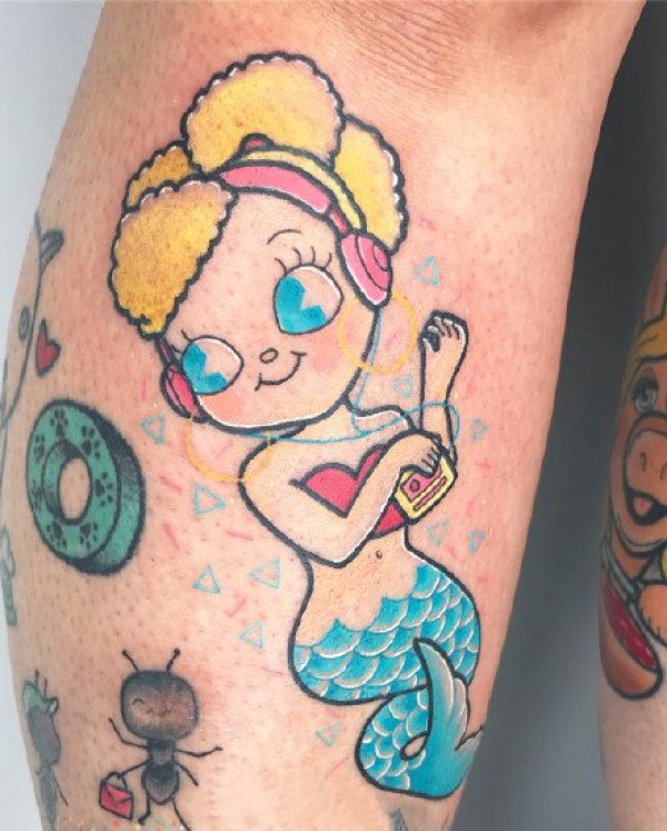 很可爱的一组小彩色卡通Q版美人鱼纹身图案