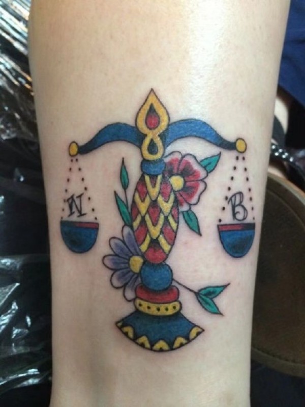 男生耳后黑色简单个性线条天秤座星座符号纹身图片