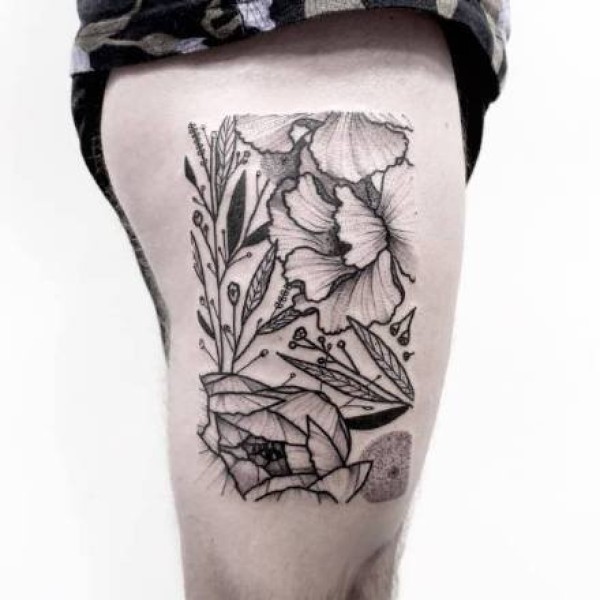 清新花朵腿部纹身图案图片_植物纹身图案大全_纹身图吧