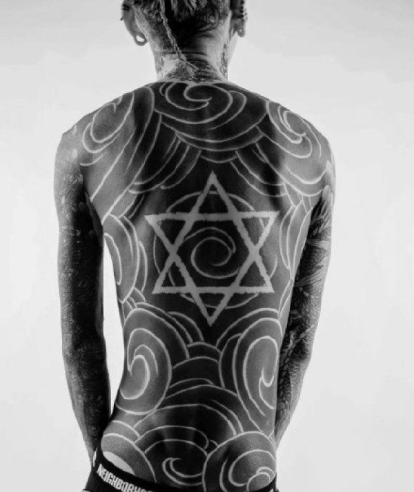 新传统风格的9张男性黑灰大满背纹身图案图片