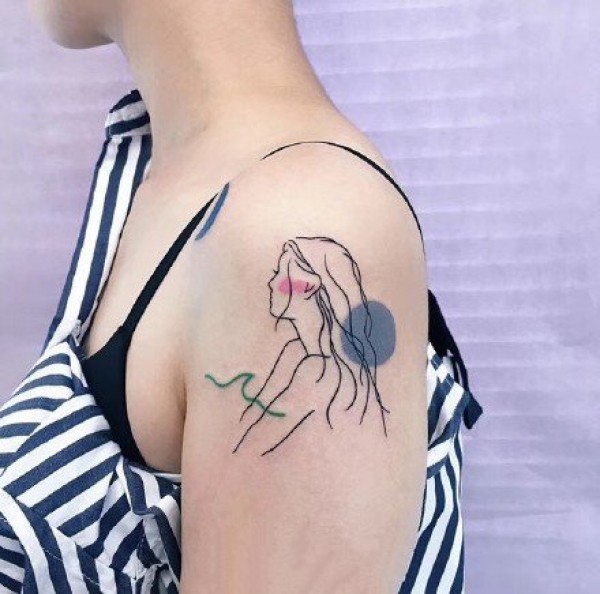 速写线条纹身:一组彩色速写人物纹身图案9张