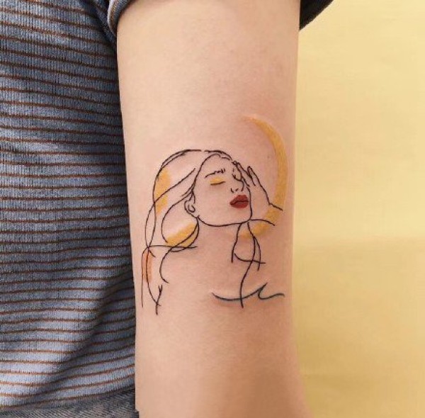 速写线条纹身:一组彩色速写人物纹身图案9张