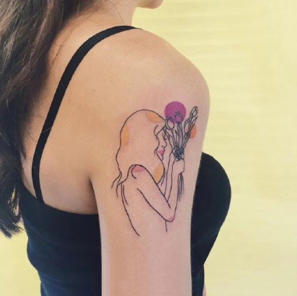 速写线条纹身:一组彩色速写人物纹身图案9张