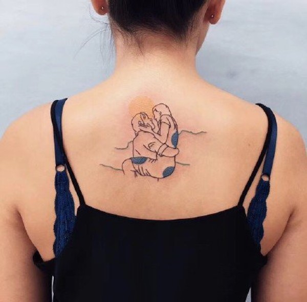 速写线条纹身:一组彩色速写人物纹身图案9张