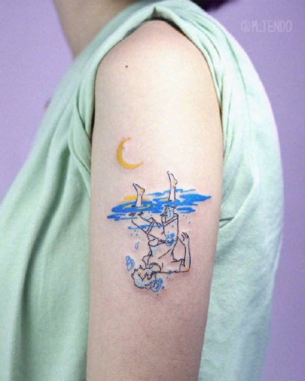 纹在手臂上的一组蓝色系小可爱纹身图片