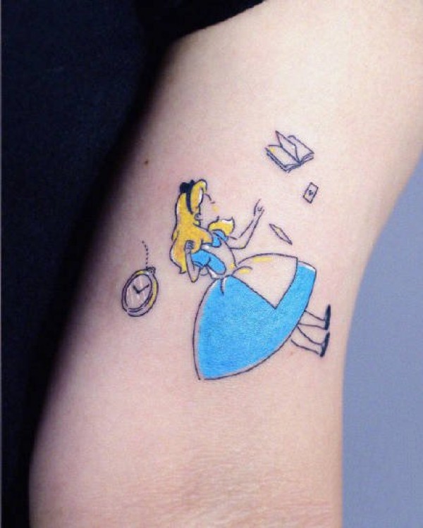 纹在手臂上的一组蓝色系小可爱纹身图片