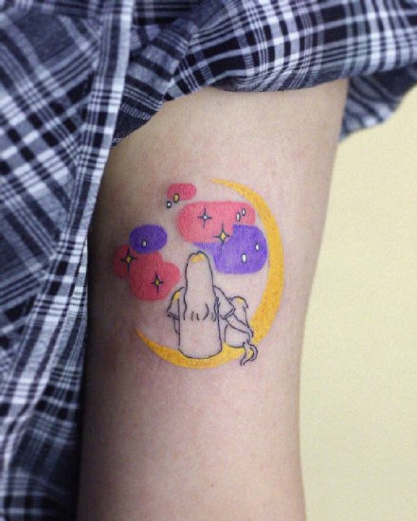 可爱卡通小猫咪纹身--猫露娜与亚提密斯的卡通纹身图案