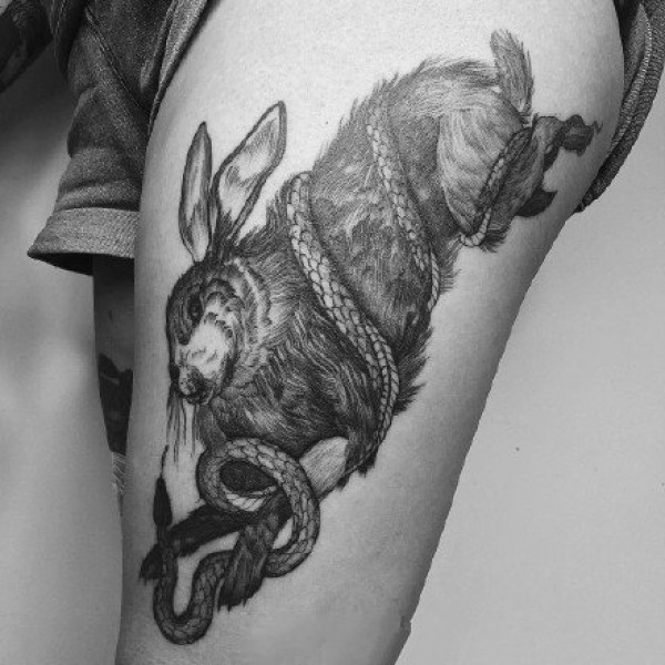 花腿纹身--一组大黑腿纹身图案作品欣赏