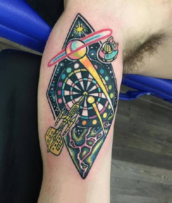 纹在胳膊上school风格的小彩色纹身图片