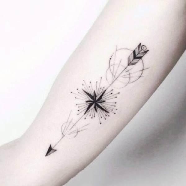 纹在小手臂上好看的几何线条黑灰纹身图案9张