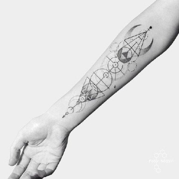 纹在小手臂上好看的几何线条黑灰纹身图案9张