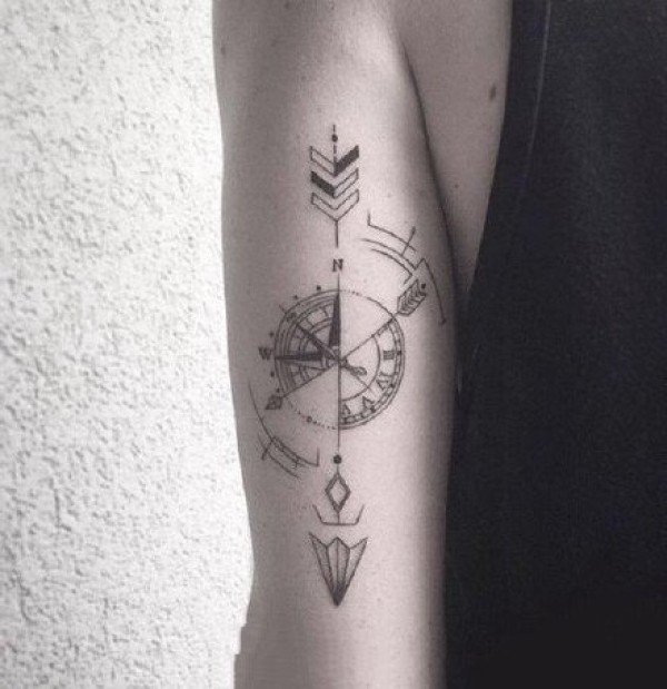 纹在小手臂上好看的几何线条黑灰纹身图案9张