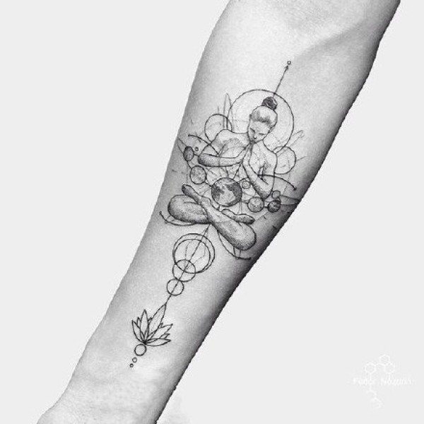 纹在小手臂上好看的几何线条黑灰纹身图案9张