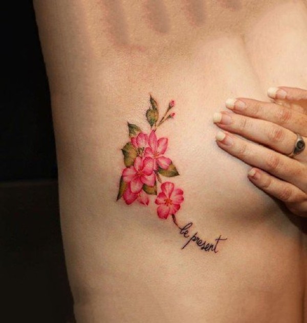 胸侧之花:纹在女性侧胸处性感的花卉小纹身图案