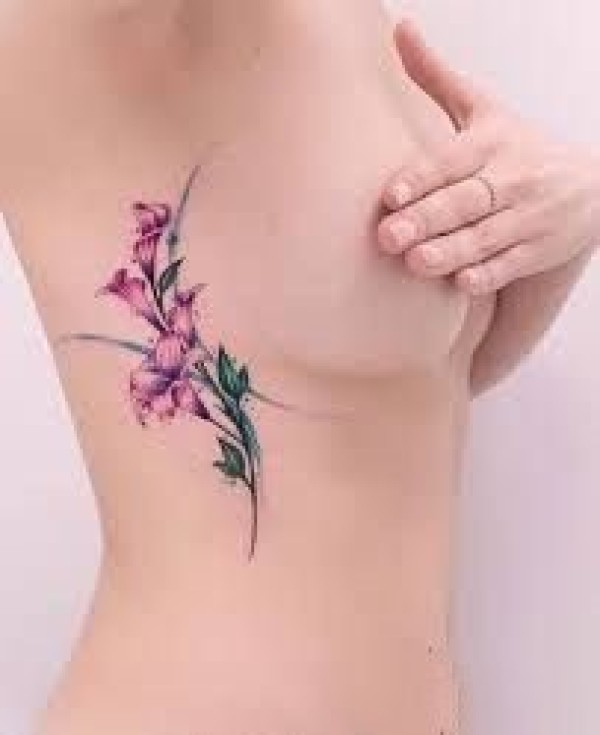 胸侧之花:纹在女性侧胸处性感的花卉小纹身图案