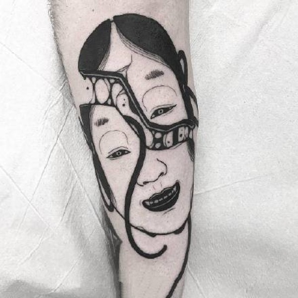 能面万媚纹身手稿_52张日式能剧面具纹身手稿图案素材欣赏