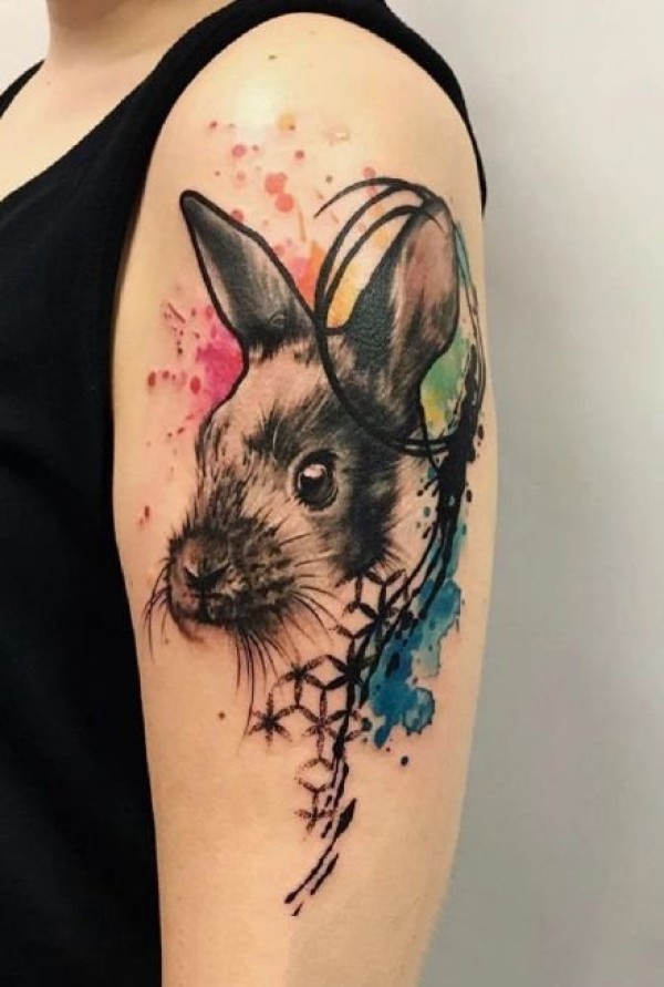 潮流纹身-色彩可爱的小猫小狗手臂纹身图片