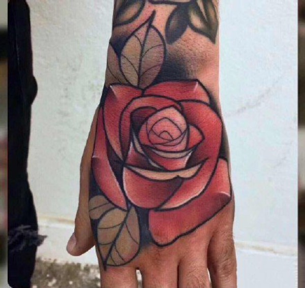 纹在手背的红色school玫瑰纹身作品9张