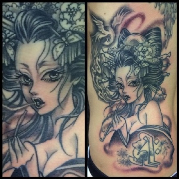 9张艺妓相关的艺伎纹身手稿和图案作品欣赏