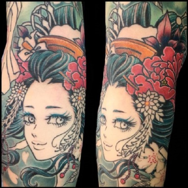 手臂艺伎:9张纹在胳膊上的花旦艺伎纹身图案