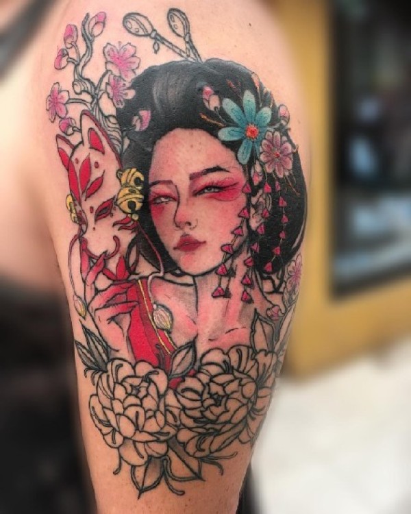 手臂艺伎:9张纹在胳膊上的花旦艺伎纹身图案